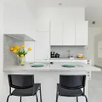 - ❓Is there a kitchen available at this apartment for guest use?Yes, this apartment is furnished with a mini-kitchen and offers an oven and a dishwasher as well.